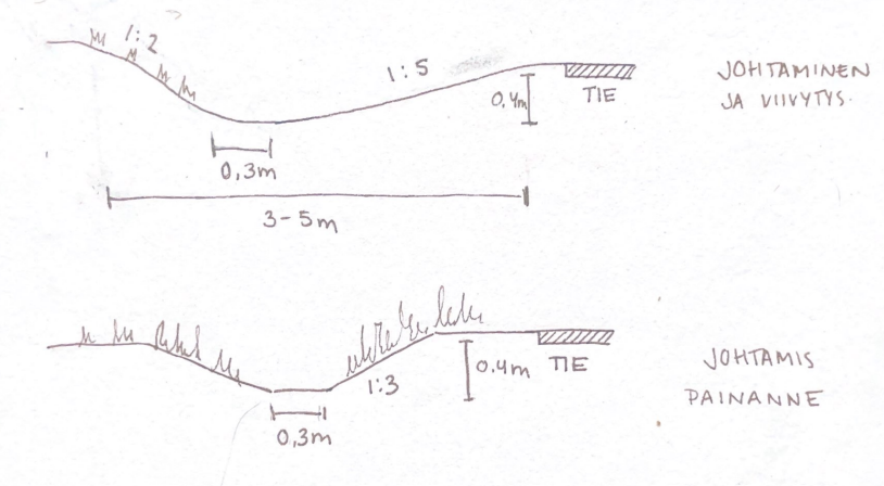 - pintavalunnan johtamiseen matalat ja loivaluiskaiset nurmetetut painanteet