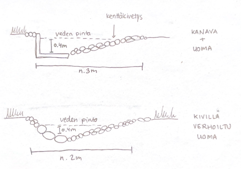 - rakennetut uomat userin luonnonmukaisen avouoman kaltaisia uomia (kooltaa usein noroa vastaavia)