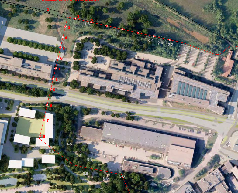 Kenttäkäynnillä huomasin myös kuinka Maarintien vieressä olevalle joutomaalle oli alettu iskemään betonisia pylväitä joiden tulkitsin olevan rakennuksen perustusten alku..ilmeisesti. Tämä sai minut jälleen vilkaisemaan asemakaavoituksia ja alueelle todellakin on kaavoitettu toimistotalon lisäksi myös asuintaloja suunnittelemani reitin varrelle…tosin talojen paikat olivat toistaiseksi vain ehdotelmia ja pienillä muunnelmilla reittini olisi mahdollinen myös rakennusten kera. Toisaalta jos alueelle ollaan rakentamassa niin siltarakenteen toteuttaminen voisikin silloin olla perusteltua ainakin rakennusalueen läheisyyteen, koska maata tullaan joka tapauksessa muokkaamaan vahvasti.
